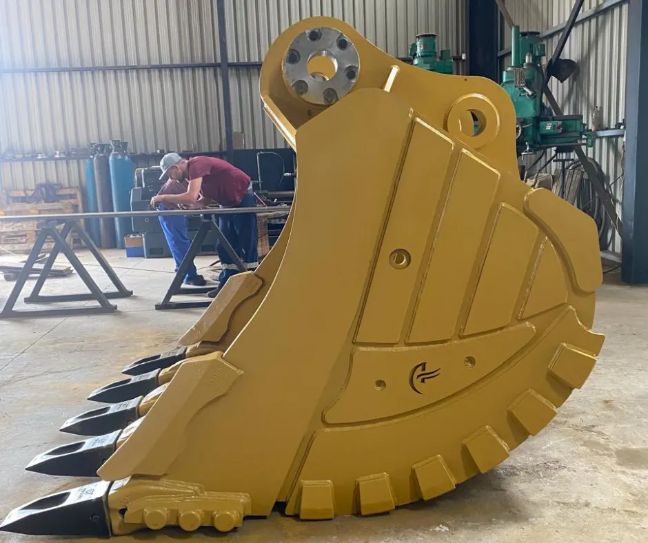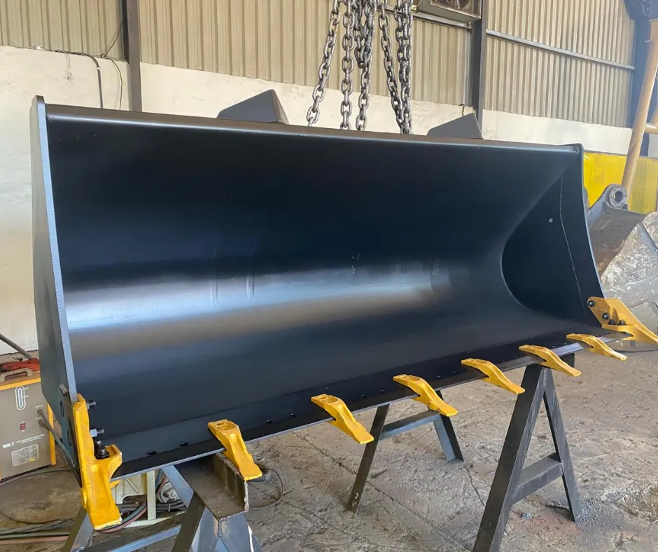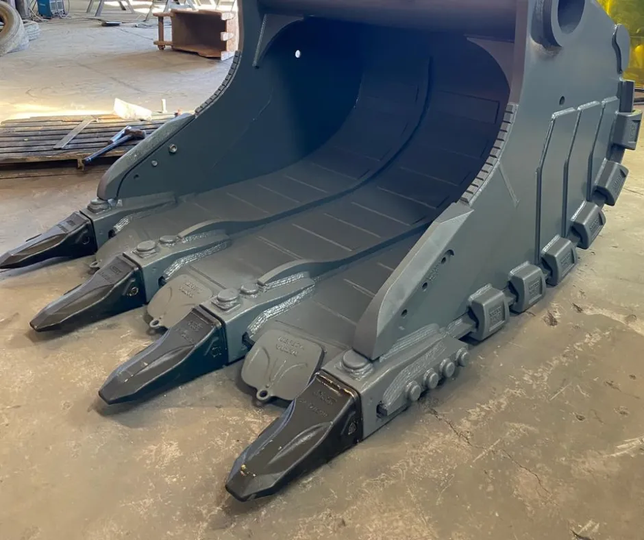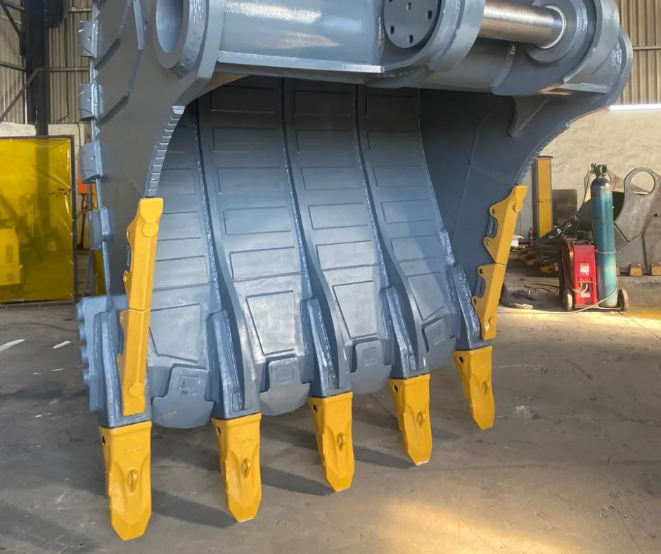 Custom-built excavator, loader, rock, skeleton, and multi-purpose buckets designed for durability.