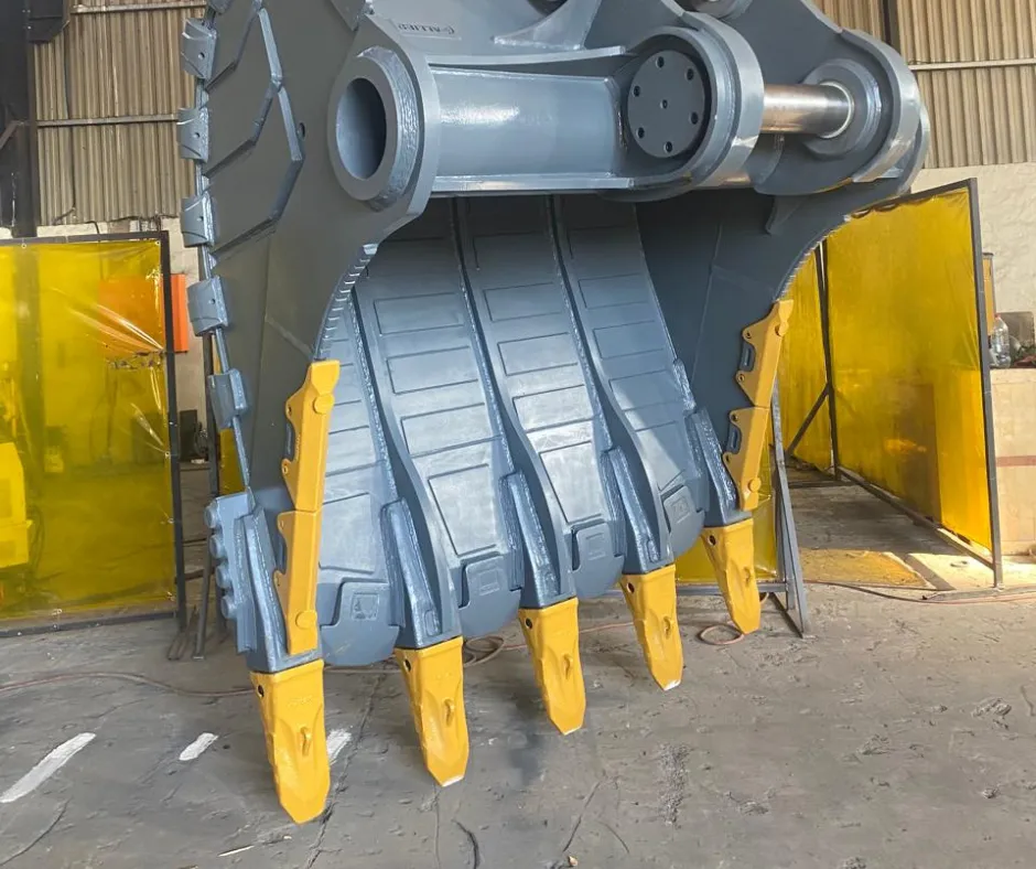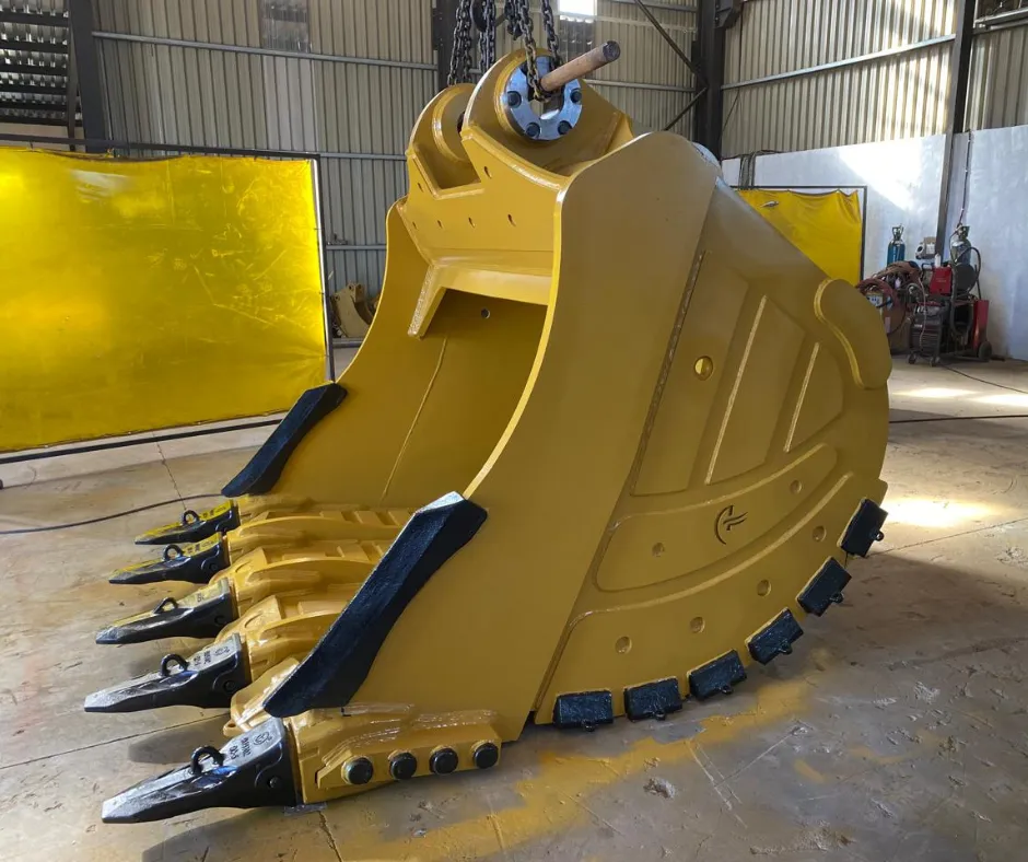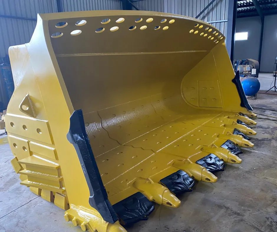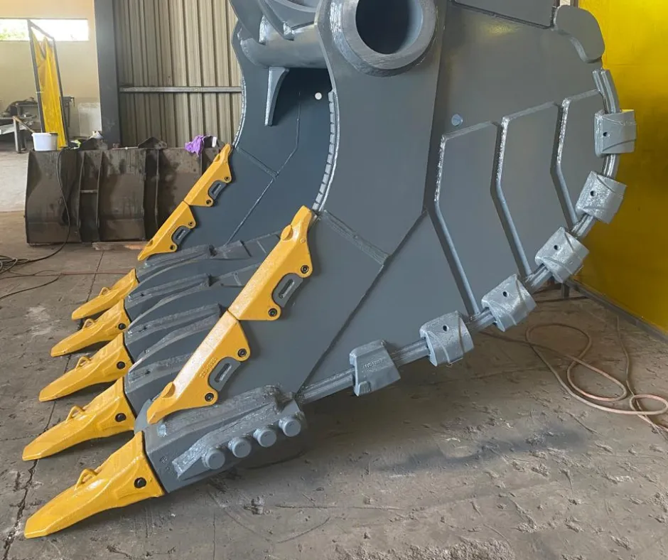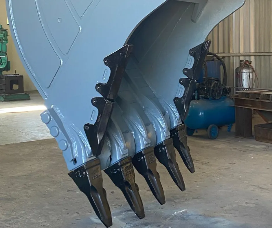 Custom-built excavator, loader, rock, skeleton, and multi-purpose buckets designed for durability.