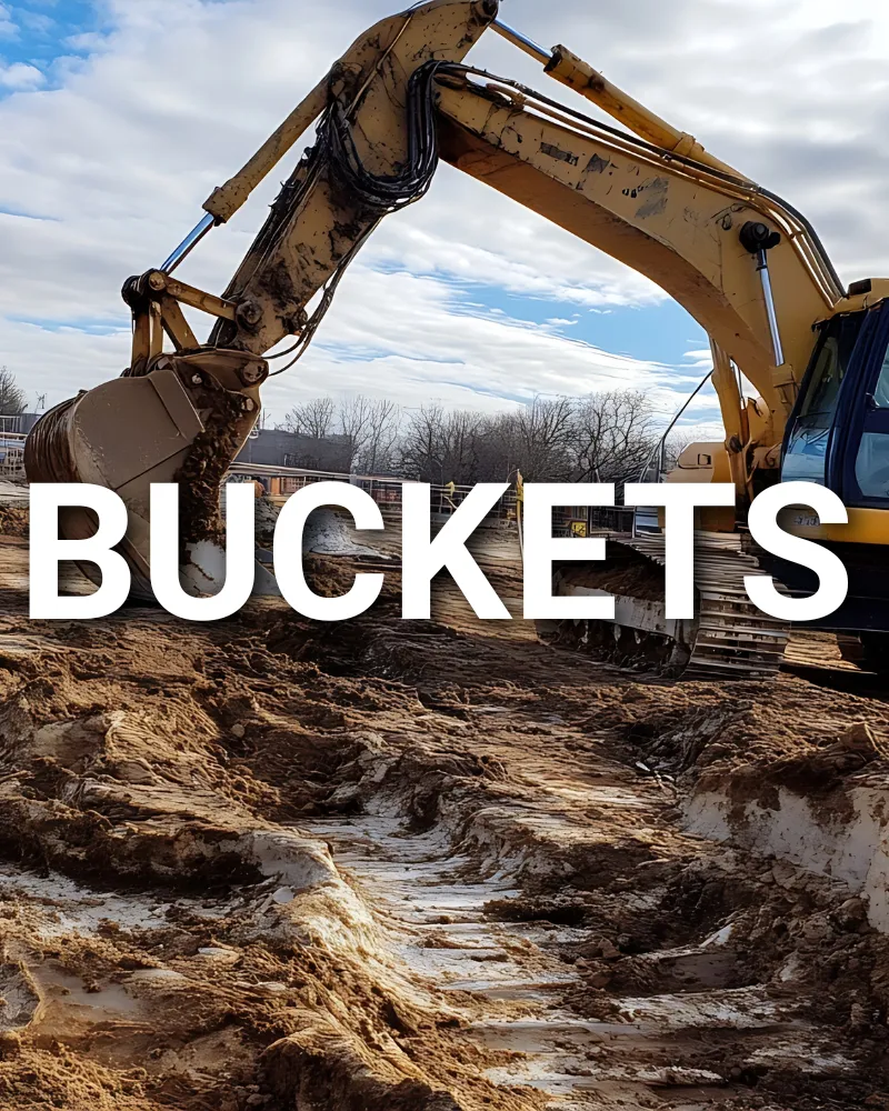 Custom-built excavator, loader, rock, skeleton, and multi-purpose buckets designed for durability.